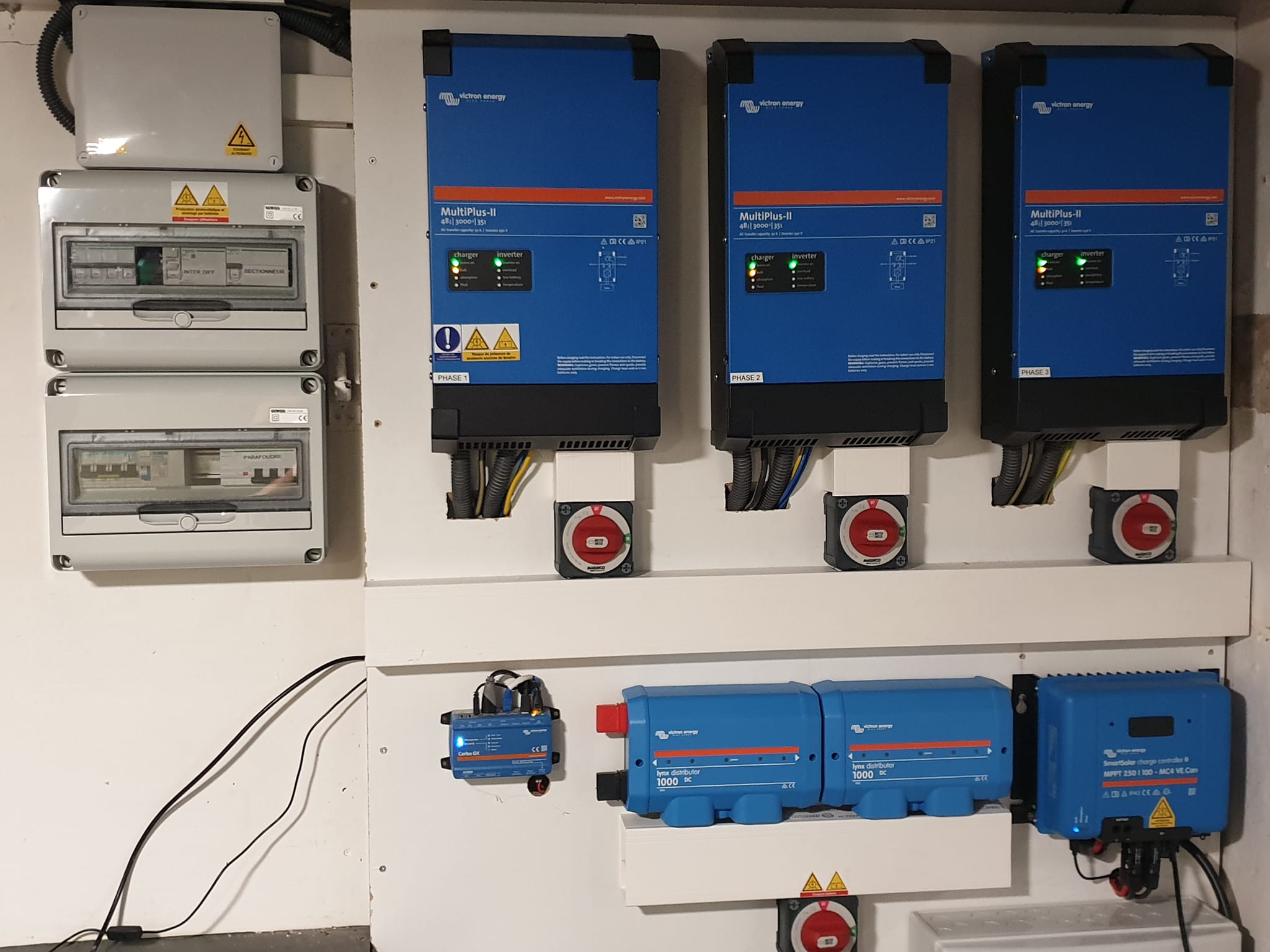 - Onduleur 10 kwh Triphasé avec 20 kw de stockage (batteries) utilisés principalement la nuit.